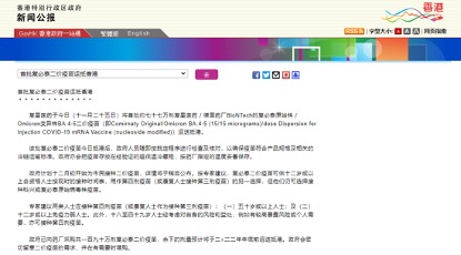 復(fù)星醫(yī)藥方面表示,復(fù)必泰二價疫苗可供12歲或以上人士作第四劑加強(qiáng)針選擇,康復(fù)人士可用作第三劑疫苗接種。根據(jù)香港特區(qū)政府官方又一信息稱,香港市民可于11月27日起可預(yù)約接種,12月1日正式開打復(fù)必泰二價疫苗。